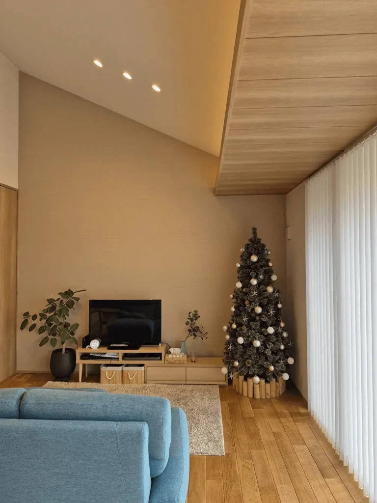 あらわし梁にする予定が、施主宅訪問で惚れてわが家にも採用したという経緯がある勾配天井です。